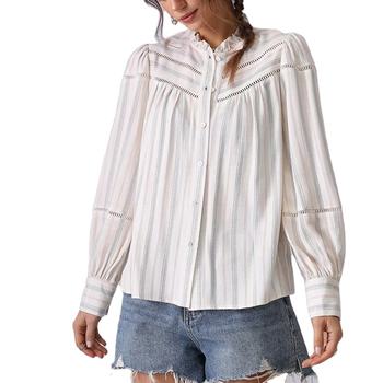 Guangzhou Dongfan Garment Factory Women's Wholesaled Long Sleeve Embroidered Cotton Strips Blouses & Shirts