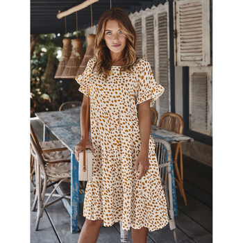 ชุดคลุมท้องผ้าฝ้ายแขนสั้นแต่งจีบสำหรับวันหยุด